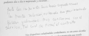 «Ante los imprevisto suscitados agradecemos la grata solución, evitando mayores inconvenientes futuros y demoras. Muy conforme con el servicio, tal cual se firmó el contrato».