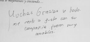 Muchas Gracias por todo. Me sentí a gusto con su compañía, fueron muy amables»