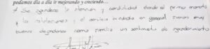 «Se agradece la atención y cordialidad desde el primer momento, las instalaciones y el servicio brindado en general fueron muy buenas, dejandonos como familia un sentimiento de agradecimiento».